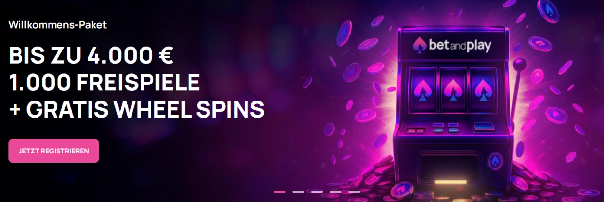 | Bet&Play | Bis zu 4.000€ Willkommenspaket | 1.000 Freispiele + Gratis Wheel Spins | 4.9/5.0 | Visa/Mastercard, Banküberweisung, Skrill/Neteller + Krypto | Spieler, die maximale Bonus-Power & Extra-Features suchen |