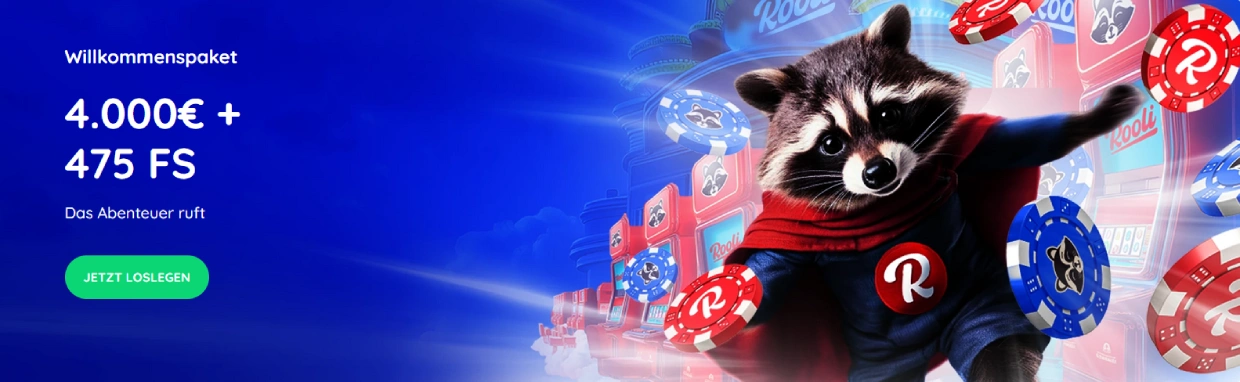 Rooli startet direkt mit einem starken Willkommenspaket bis zu 4.000€ plus 475 Freispiele und setzt klar auf ein modernes, spielorientiertes Erlebnis.